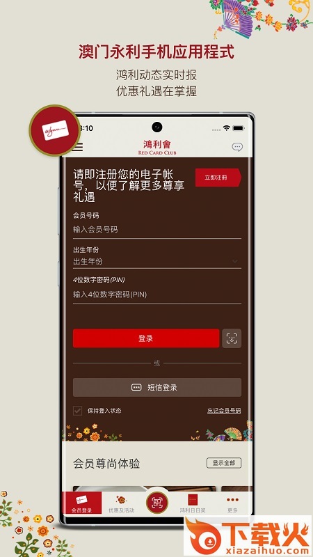 会员透过「澳门永利」手机应用程式可获得奖赏资讯,随时随地查阅积分、换领礼品和会员尊属礼遇,马上在此下载,开启会员旅程!