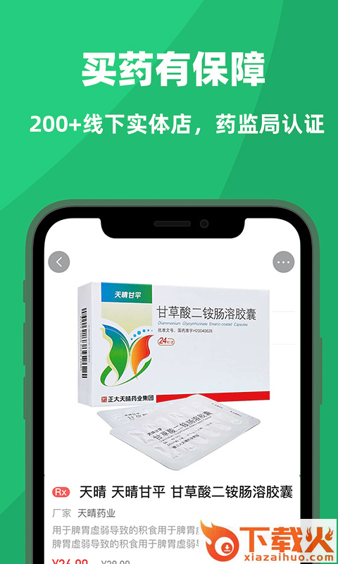 2、正品保障:依托于线下300家实体药店,提供各项购药服务,药品品质有保障。