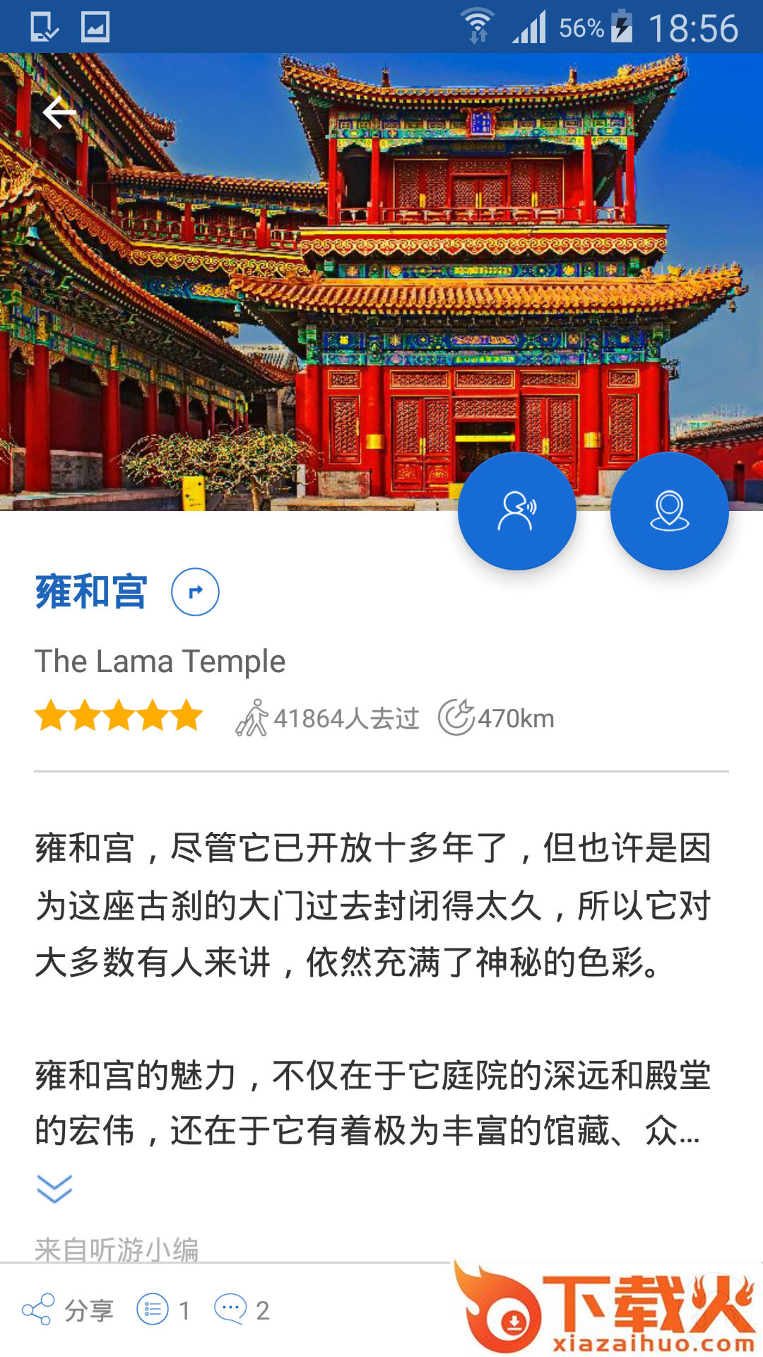 雍和宫导游app是一款为喜欢旅游的用户提供的便捷软件,通过软件你可以了解到雍和宫导游景区中的相关门票信息,旅游路线,以及相关景点攻略,让你接下来的旅游路程变得更加的轻松。同时软件还可以像真正的导游一样...