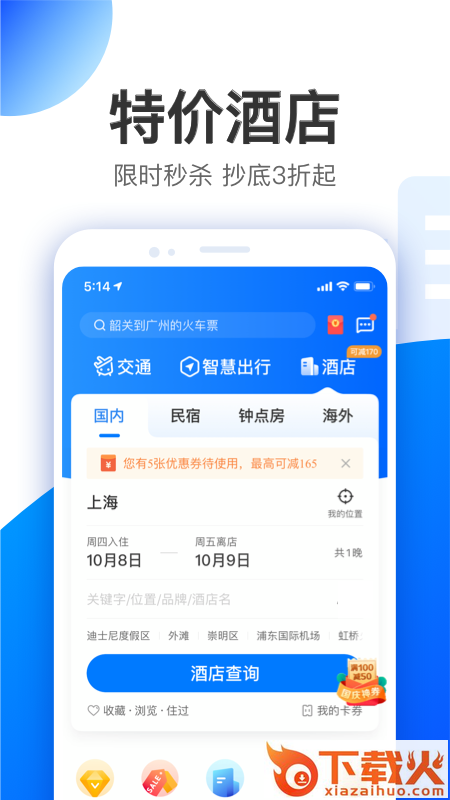 智行客户端提供机票、酒店、火车票、汽车票、景点门票预订;