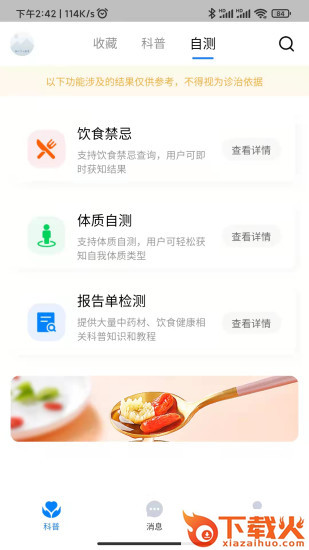 壶录app,中药材科普、健康饮食知识学习平台,提供大量科普知识,内容丰富,随时掌握各种健康知识,还支持饮食禁忌、体质自测等功能,满足用户使用需求。