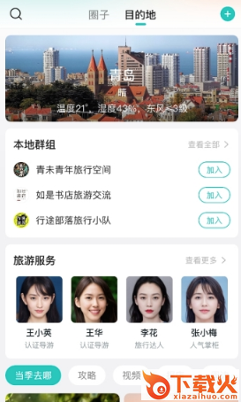 主要功能:旅行结伴、社区交流、查看附近旅行的人、发布旅拍、发布攻略、发布点评、优秀商家推荐等;