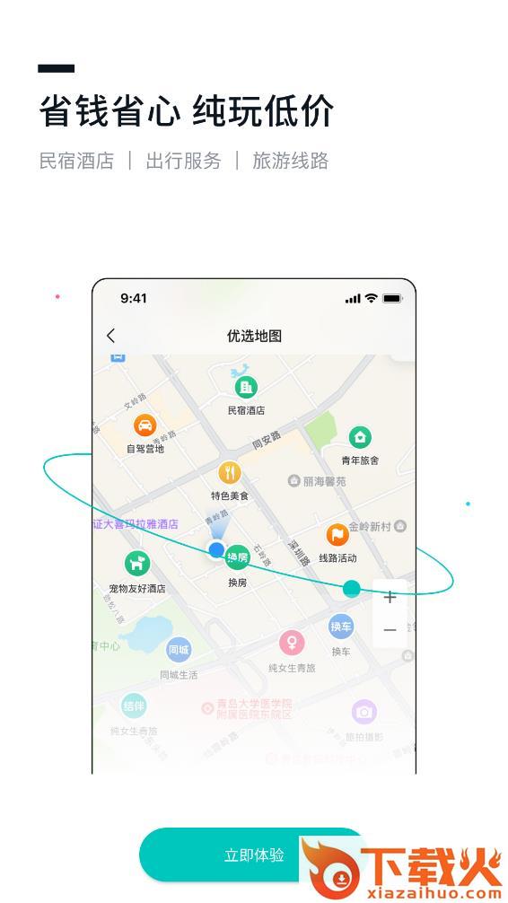 主要功能:途中结伴偶遇、发布圈子交流、获得出行服务、预订民宿酒店、优选旅游线路等。