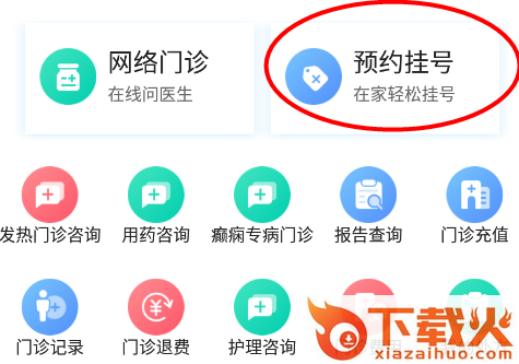 3、APP首页选择预约挂号,进行在线挂号操作