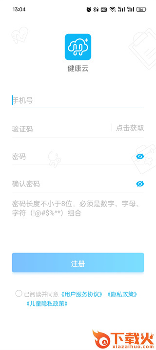 3、最后来到注册的页面中我们输入上手机号、验证码和密码后点击【注册】即可;