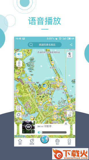 生动的景区手绘图,微景区准确导航。完美展现景区地形地势、建筑、道路等等细节内容,在你心里建设一张立体的景区一览图。实时导航与传统地图无缝对接,精准GPS定位,GPS自动语音导览,让旅行更轻松。