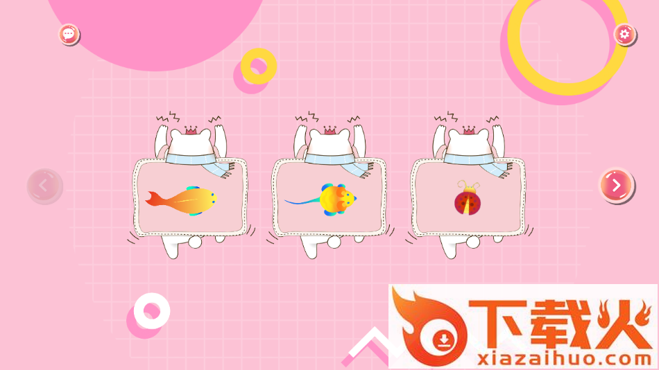 2. 左右滑动,挑选一款逗猫游戏:小猫抓鱼、猫捉老鼠、拍虫子、狗尾巴草、毛绒球、红外线模拟器等;