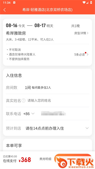 5、最后点击过后我们填写好信息之后直接点击【立即预定】即可;