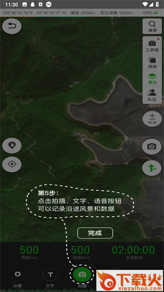 5、点击拍摄、文字、语音按钮,可以记录沿途风景和数据