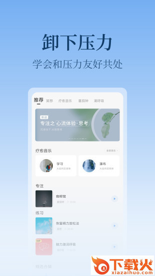 疗愈音乐、冥想课程、呼吸练习、专注工具和心理算法,改善身心亚健康状态,帮助你在工作、学习及生活中拥有更好的表现,从容应对新挑战。