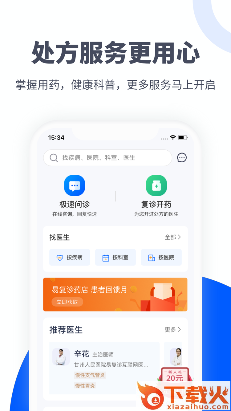 易健付app是一款医疗健康服务平台,平台拥有处方查询,便捷购药,在线咨询,健康课堂,互联网医院等等功能服务,可以帮助用户更好的就医治病。