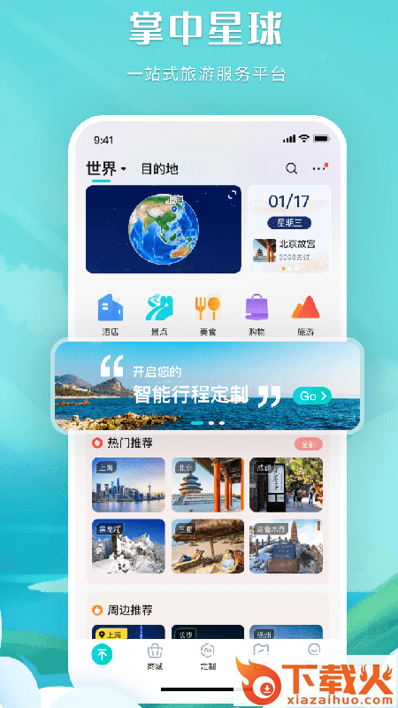掌中星球app,一站式旅游服务软件,吃喝玩乐购等多种服务尽在其中,一键查看各个景点信息,发现更多优质旅游产品,一站解决旅游的衣食住行烦恼。