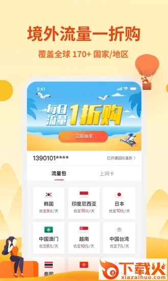 境外流量包覆盖258个国家/地区,无需换卡无需设备即可上网冲浪;