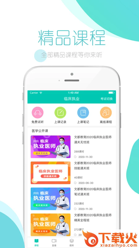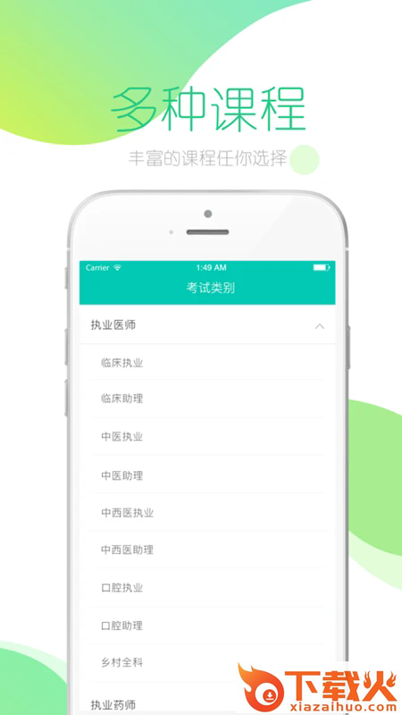 3、覆盖临床执业、临床助理、中医执业、中医助理等10几种不同的课程。
