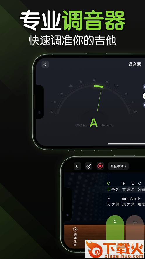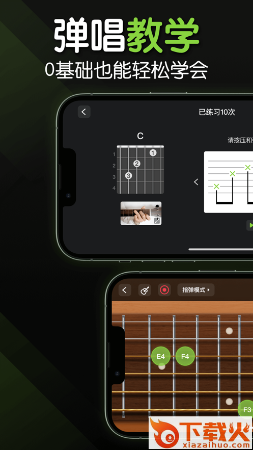自定义和弦模式、海量流行曲库,零基础轻松指弹吉他,随时随地演奏流行乐曲。