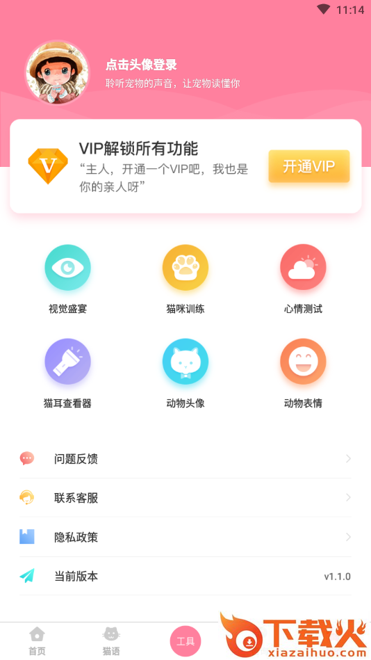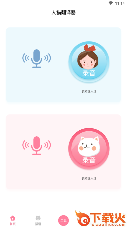人猫翻译器app,永久免费的人猫交流翻译工具,既能够翻译猫语,又能够将人声转化为猫语,帮助主人弄懂猫咪情绪,更好沟通,好玩又有趣。...