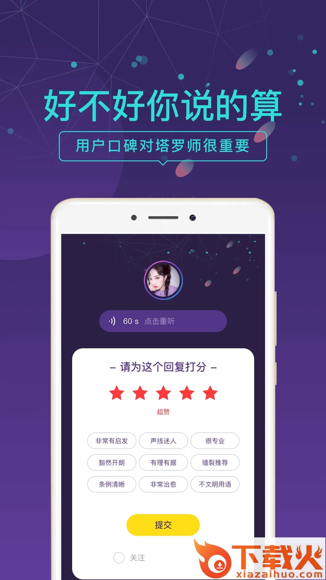 解答专业:每位为您解惑的塔罗师都是通过专业、严格筛选认证的。并且我们有严格的淘汰机制,塔罗师好不好,您说的算。
