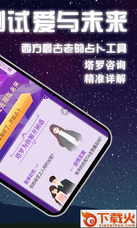 一款手机塔罗牌占卜软件,软件可以帮助用户测星座运势,算恋爱感情,占卜未来事业财富状况等,软件使用简单方便,觉得不错的朋友欢迎前来下载使用。