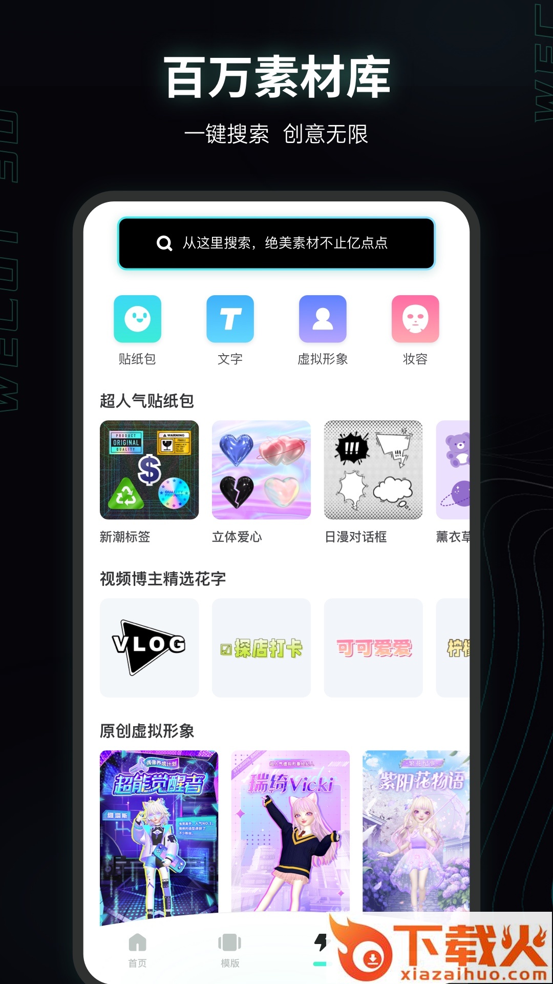 [精致体验]滤镜、文字、背景模板、贴纸,百万素材库一键搜索选择,让细节更完美,让作品更精致