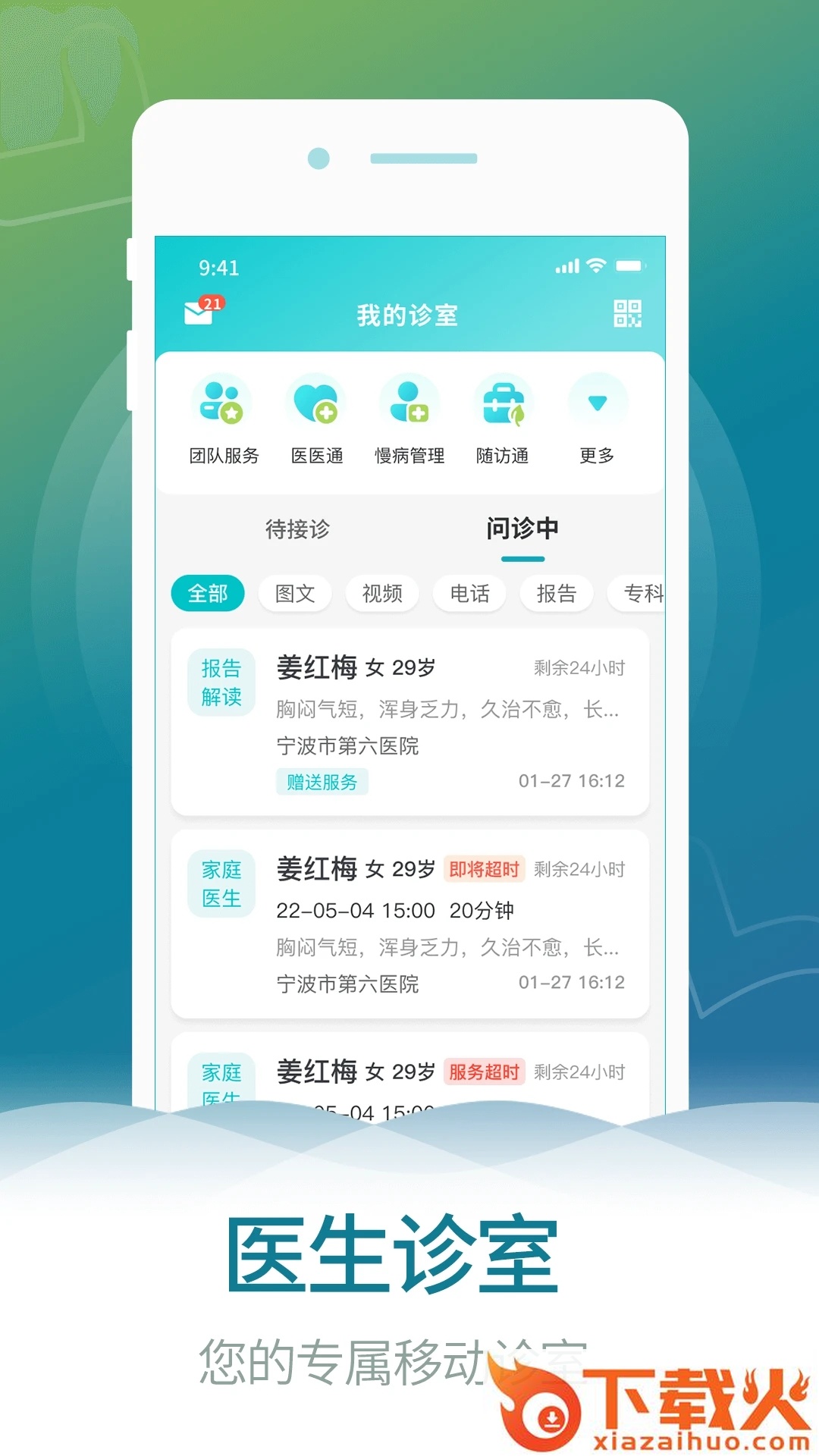 【移动诊室】解答患者问题,为患者提供在线的图文、电话、视频问诊服务