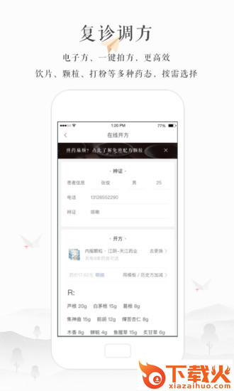 高效维护新老患者、图文语音咨询、线上复诊、开具处方、舌像AI识别、预约挂号;