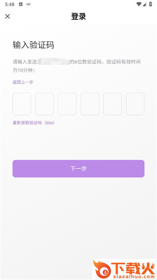 2、然后在输入验证码的页面中我们输入上获取的6位验证码后点击【下一步】即可完成注册;