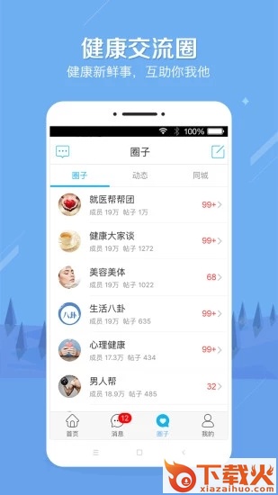 7、健康圈子:健康交流社区,与同科室、同疾病的病友及医生进行互动,不定期邀请知名专家参与互动;