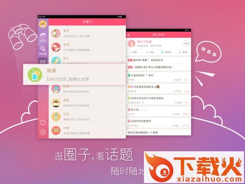 一个可以迅速扎堆,与同好结盟,供你安放情感的女性社区!150个火爆圈子,韩剧脑残粉、恐怖片达人、萌图收集癖、二次元少女…各种乱入!