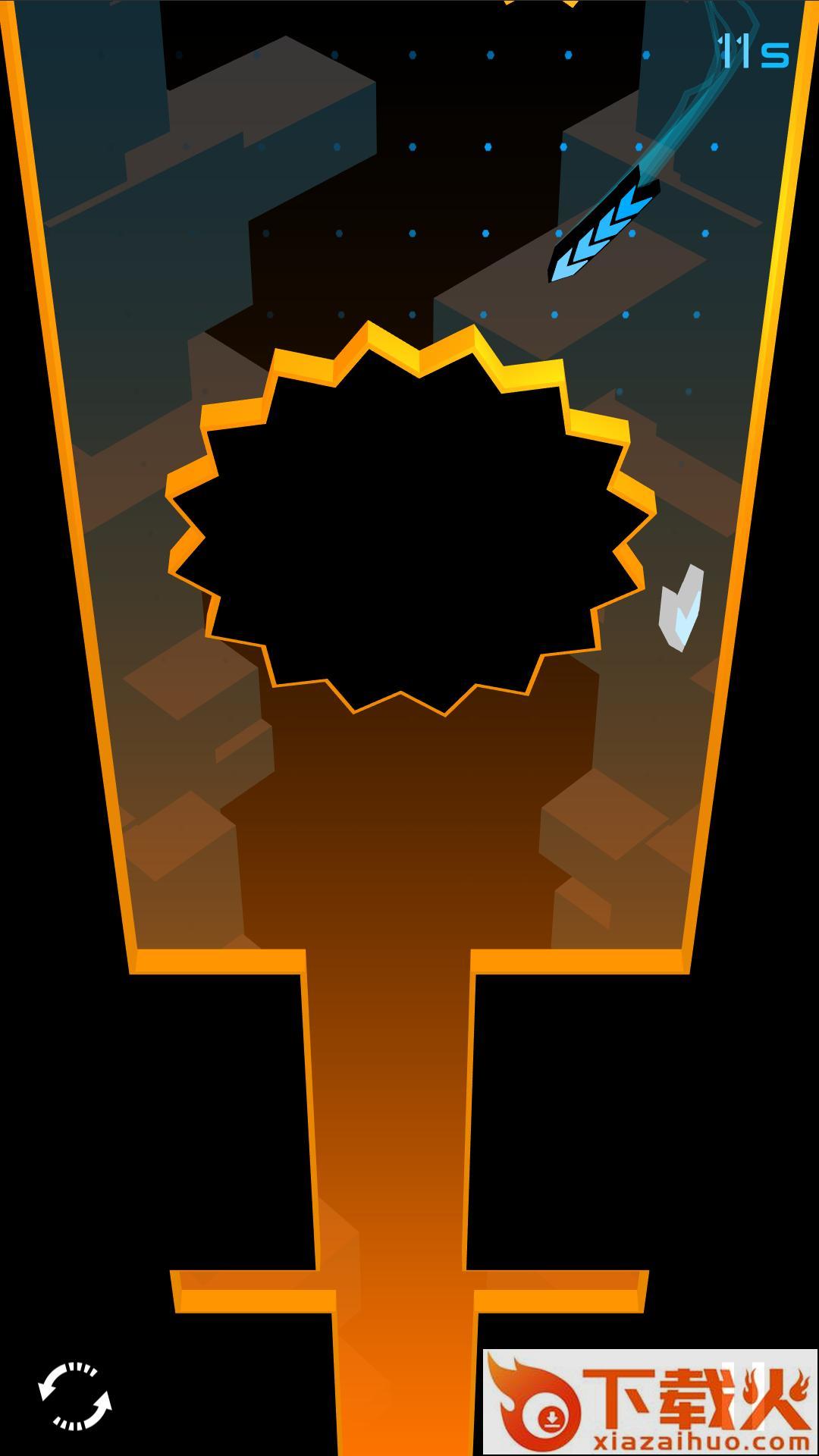 穿梭效应是一款科幻躲避游戏,游戏中,玩家要控制一个箭头方块向下滑落,过程中需要躲避迎面而来的障碍物。