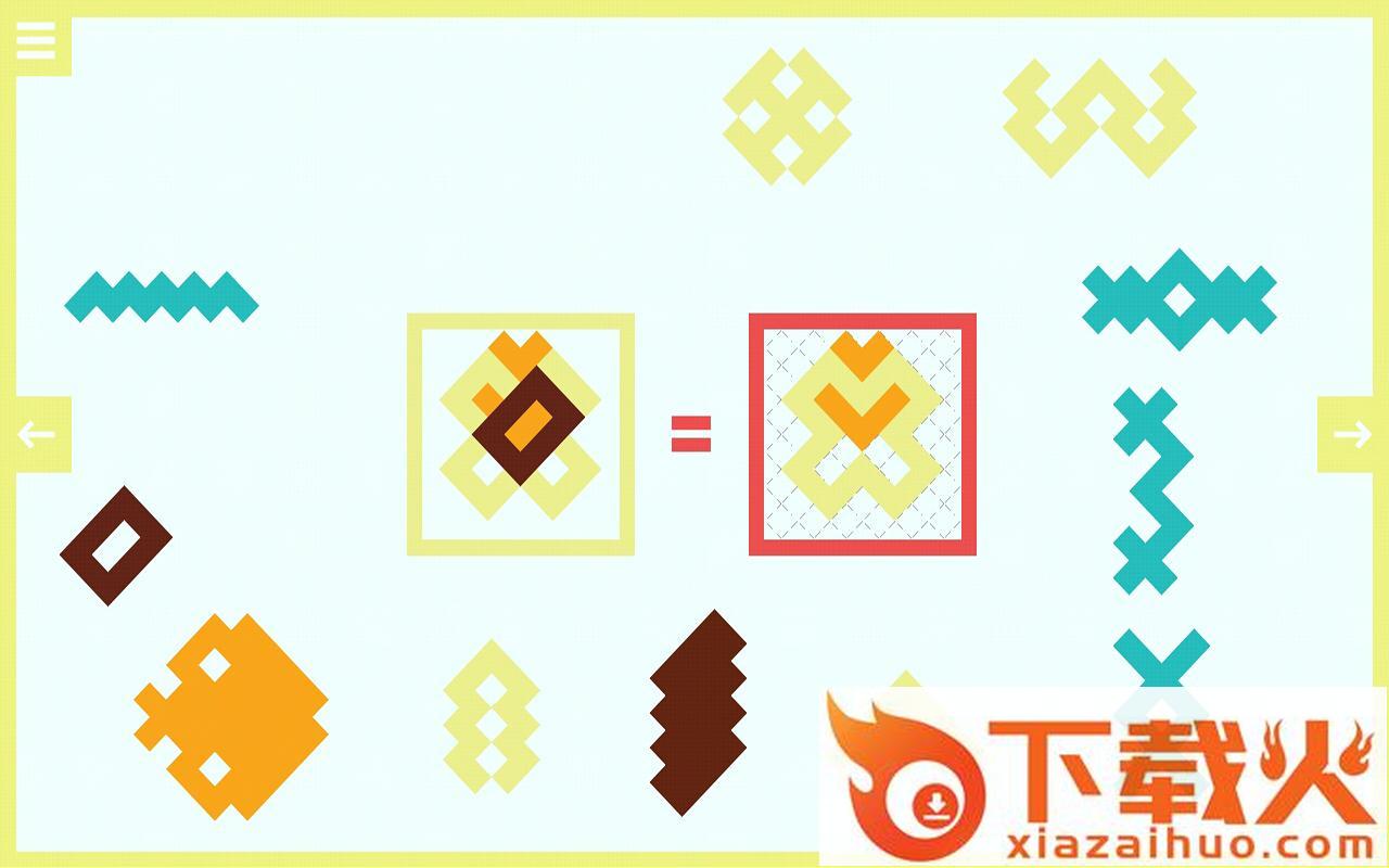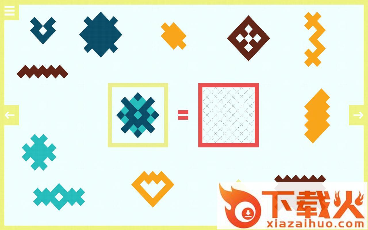 你需要根据左边的图案,在右边用其他的彩条将其合成出来,这样就能过关了。