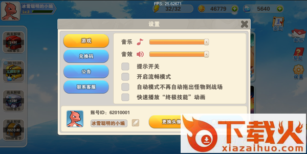 1.设置页面包括可以对游戏声音画面进行设置、兑换码、公告、联系方式我们为你一站式提供,还可以免费更改游戏头像和训练家昵称哦~