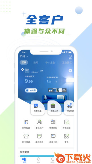 全网上线扶贫商城、保险超市、电动汽车服务,为您带来更为丰富贴心的服务;广州、深圳、佛山地区上线配电设备运维、电气厨房、电动汽车充电设施建设、分布式光伏等用电增值服务,为您提供个性化的用电服务。