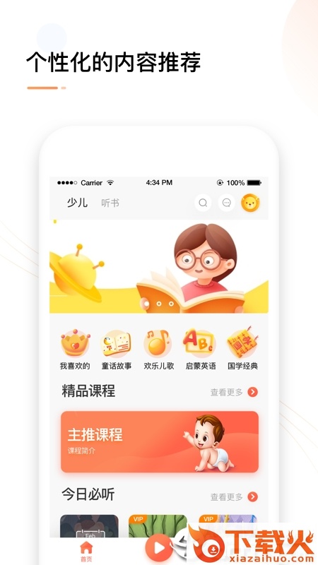 海量内容分为儿童和成人两个板块,通过大数据分析,根据年龄、喜好等标签每天智能推送感兴趣的内容,让每位用户看到个性化的精彩内容。