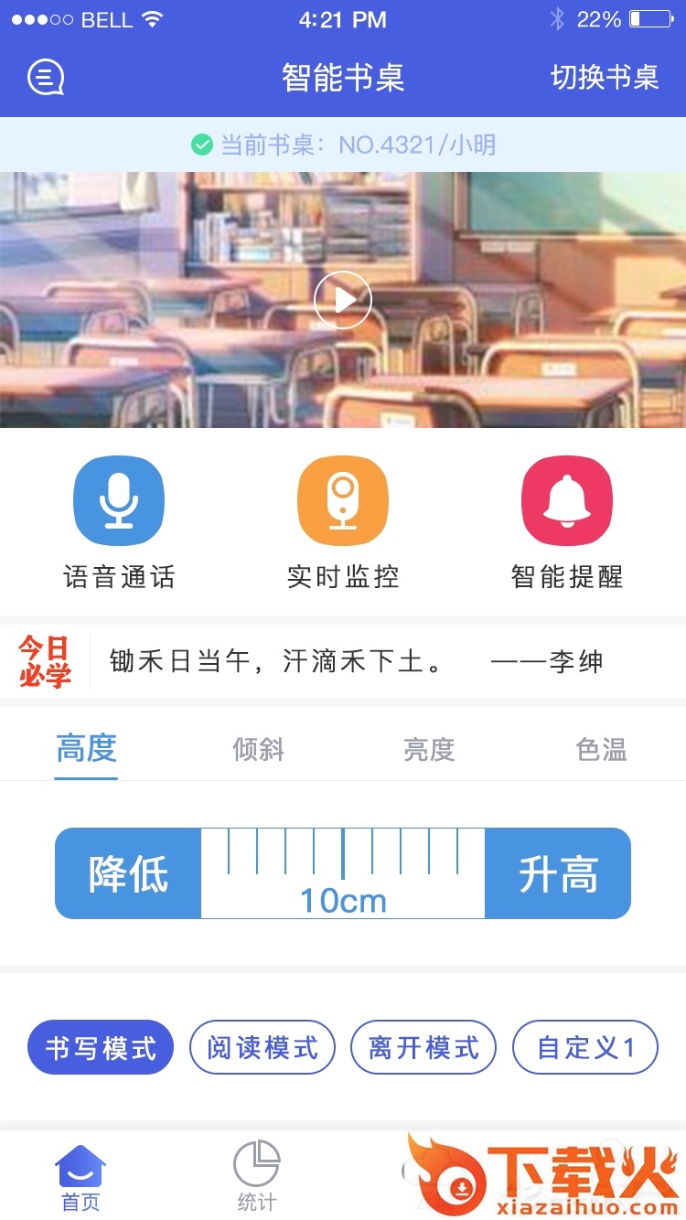 三余书桌app,配合智能书桌硬件使用的智能控制APP,支持书桌高度调节、灯光调节、实时监控等多种功能,让用户远程控制智能书桌,帮组孩子养成良好的坐姿习惯。