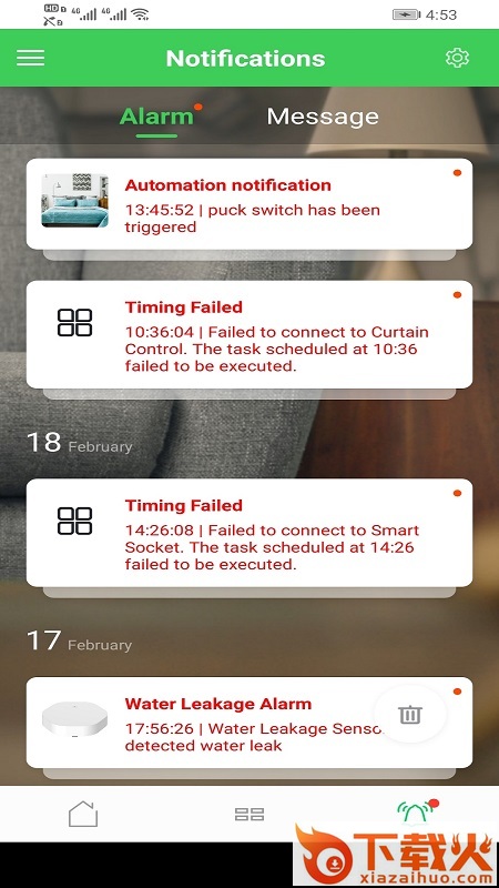 对于一些紧急的事件,例如漏水传感器检测到的漏水会立即通知您,并且该通知将记录在app的历史记录中。