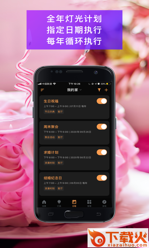 智能家居光环境App,提供了智能灯光场景、DIY灯光预设、设定全年灯光计划等特点,可以帮助用户任性设定自己想要的灯光效果并将其设定为某种场景,还可以定期自动开启哦!