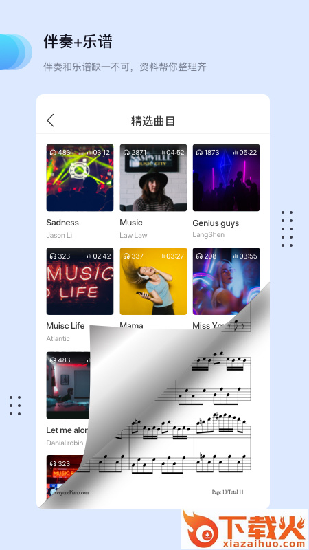在每个萨克斯音乐家的口袋中,模拟了一支音色逼真的私人乐队。包含了古典、流行、爵士和欧美等各种风格的海量原曲、伴奏与乐谱可选。