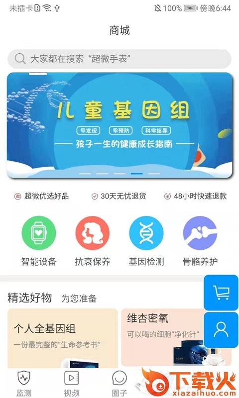 超微健康app,健康指数实时评估,精确心率、血压、血氧、实时监测;提前24小时预警心梗脑卒中,紧急呼救・GPS准确定位;家人健康一键预览,随时随地了解家人健康状态;更多健康资讯防患疾病风险,健康生活养生指南;健康社区圈健康问题交流平台,互动与分享。