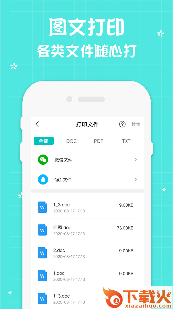 【易用】使用最新的文件检索技术,对于手机内的常用工具和软件能够分类检索并提前筛选,通过简单的人机交互实现微信打印、QQ打印、钉钉打印、网页打印等。