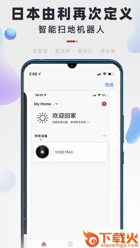 您通过App可以完成对扫地机器人的功能操控,还可以实时获得扫地机器人的清扫动态信息,躺着即可享受温馨干净的家庭环境