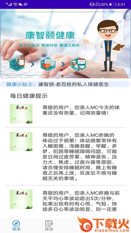 2.了解自己的身体健康情况,每天掌握与您及家人密切相关的健康资讯;