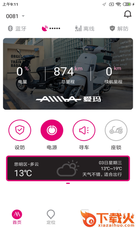 爱玛骑行APP是智能出行帮手,提供解锁、启动、寻车等操作。