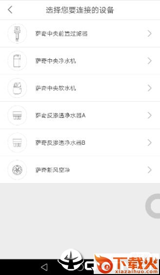 目前可配置的设备如“萨奇中央软水机”,“萨奇中央净水机”,“萨奇反渗透净水器”等。