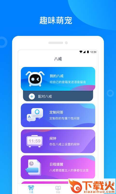 八戒机器人app,智能交互完成播放音乐,打电话等等内容。这是一个非常智能的手机模式。可爱的萌宠教你起床,提醒你每日事件,快来看看。