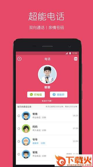 【打电话】 设置亲情号,就可以和手机相互打电话。双向高清音质,亲情号防骚扰。