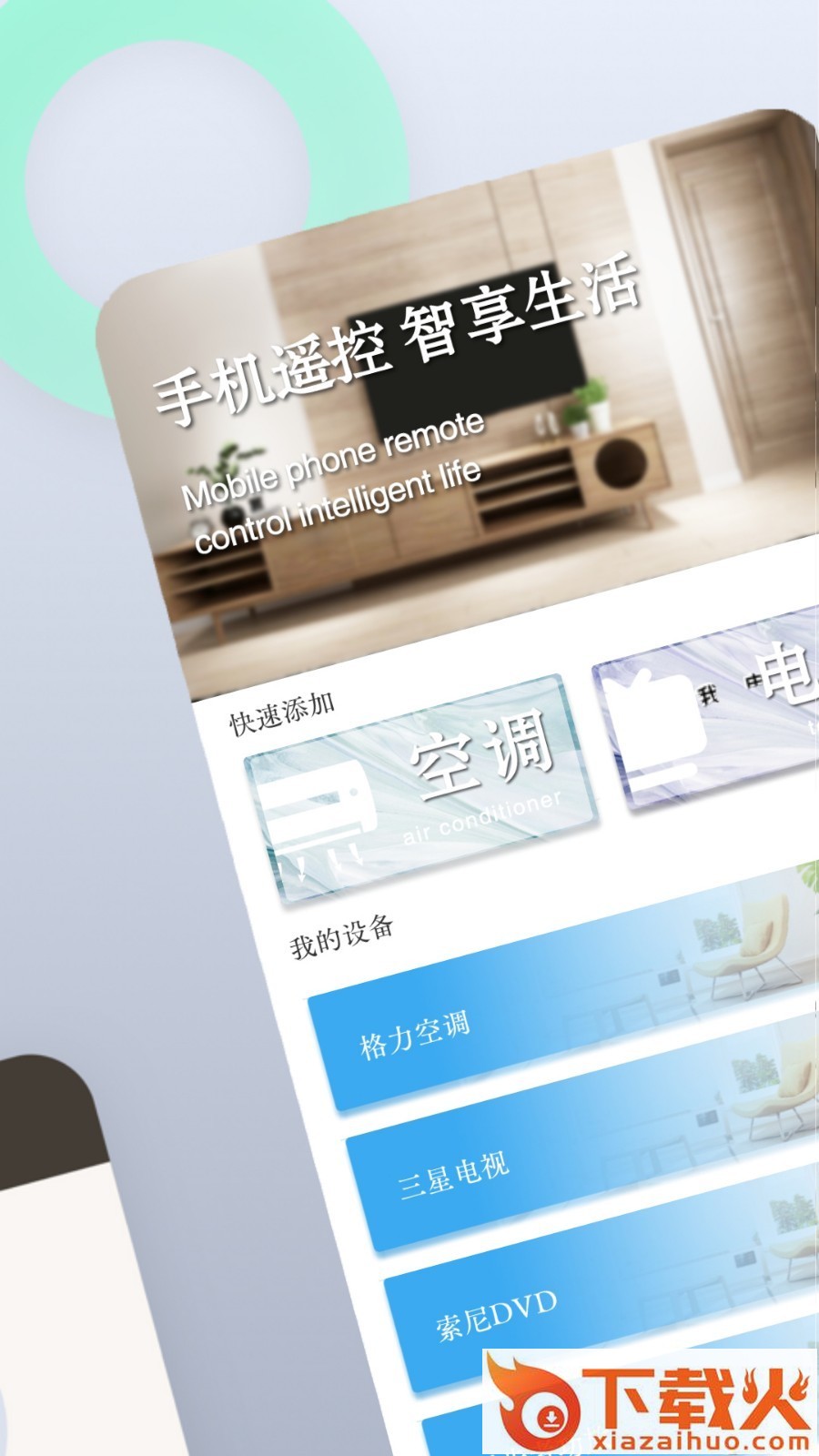 通过手机,遥控家里所有家电设备。不管是空调设备、电视设备、风扇等都可以通过手机来进行遥控。再也不用到处寻找遥控器。手机就是你的遥控器。