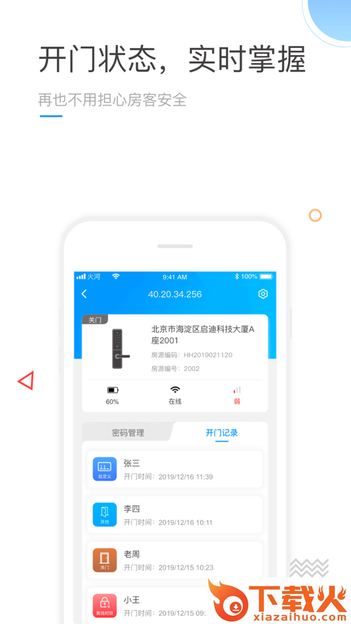 火河智能app是一款智能门锁助手,软件可以帮助用户手机连接门锁,实现远程管理控制等等,可以帮助用户更好的门锁安全,需要的朋友可以前来下载使用。...