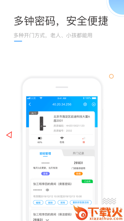 火河智能app是一款智能门锁助手,软件可以帮助用户手机连接门锁,实现远程管理控制等等,可以帮助用户更好的门锁安全,需要的朋友可以前来下载使用。