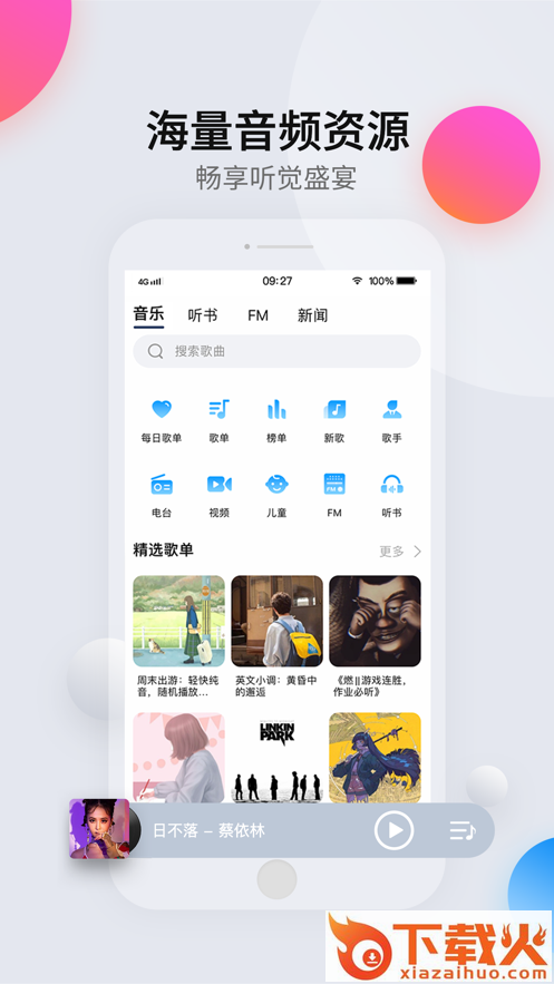 3、悦听畅享听觉盛宴,可同步酷狗音乐、听书、无线广播FM应有尽有,多资源融合,选择性更多。