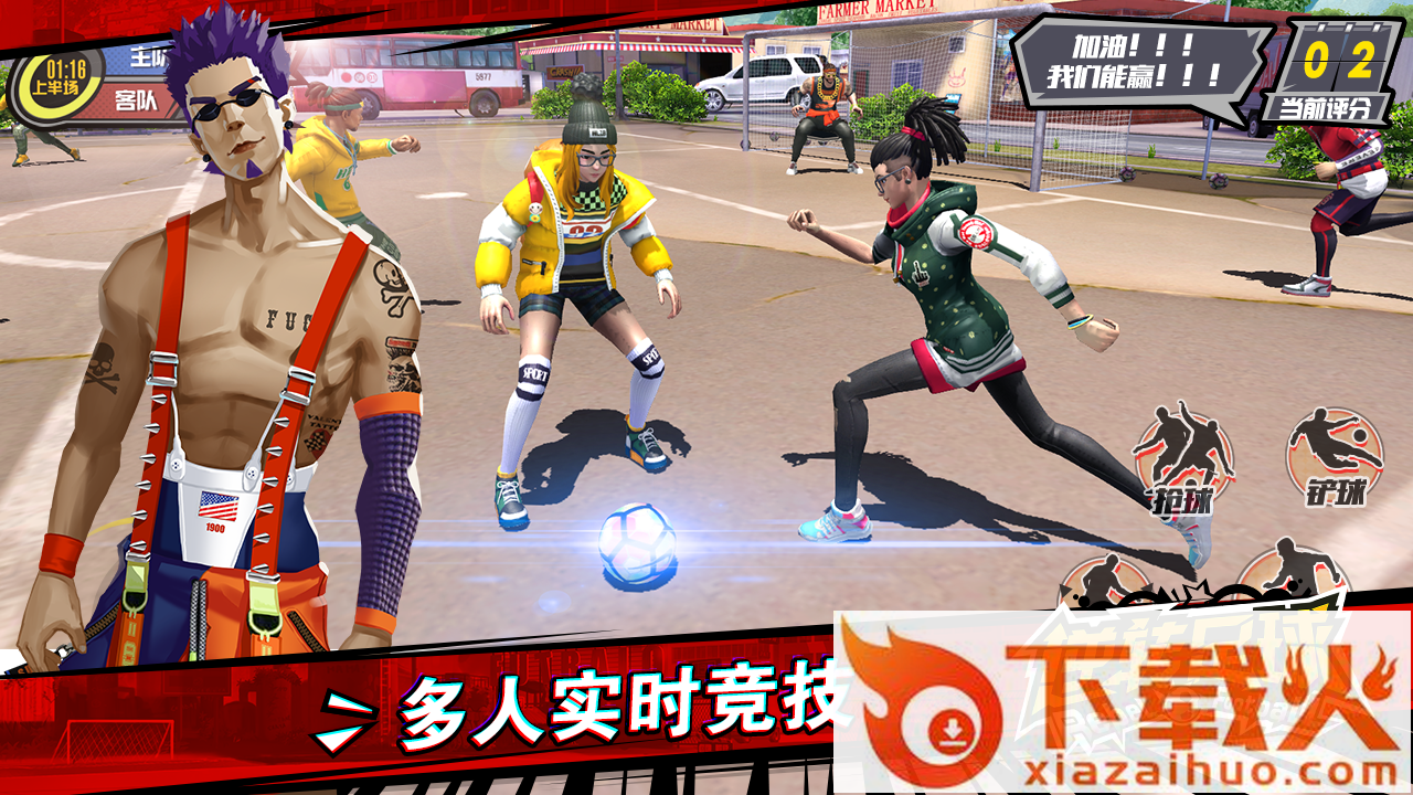 这是一款街头风4V4实时竞技的足球游戏。游戏通过潮流、街头、自由和随性等元素,向玩家展现了一个Peace&Love,热血,挥洒青春,充满情义的足球世界。通过操作单个球员的过人、传球、跑位、射门等去和其他玩家队友配合,最终战胜对手。